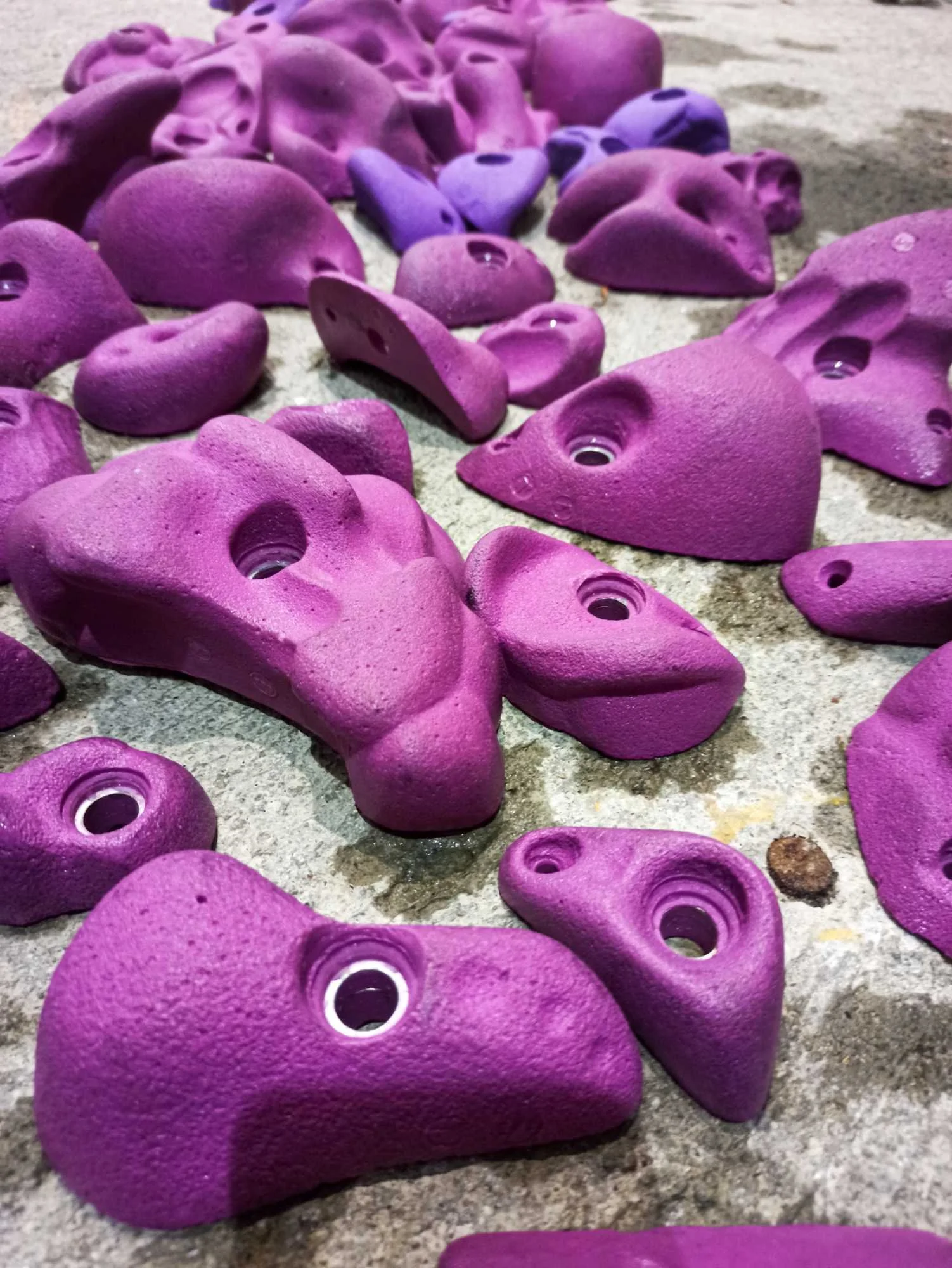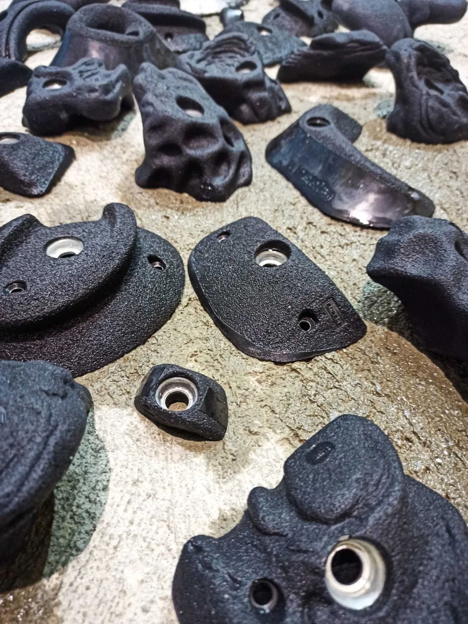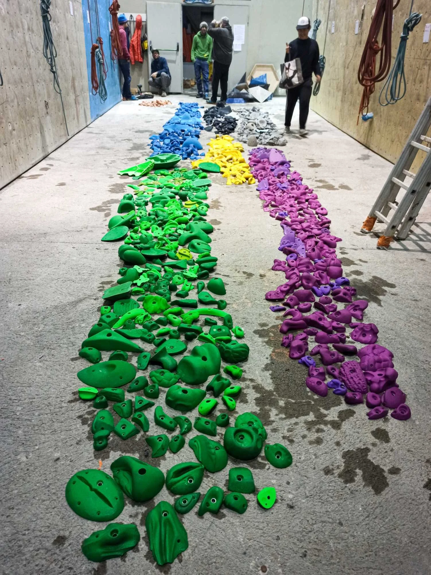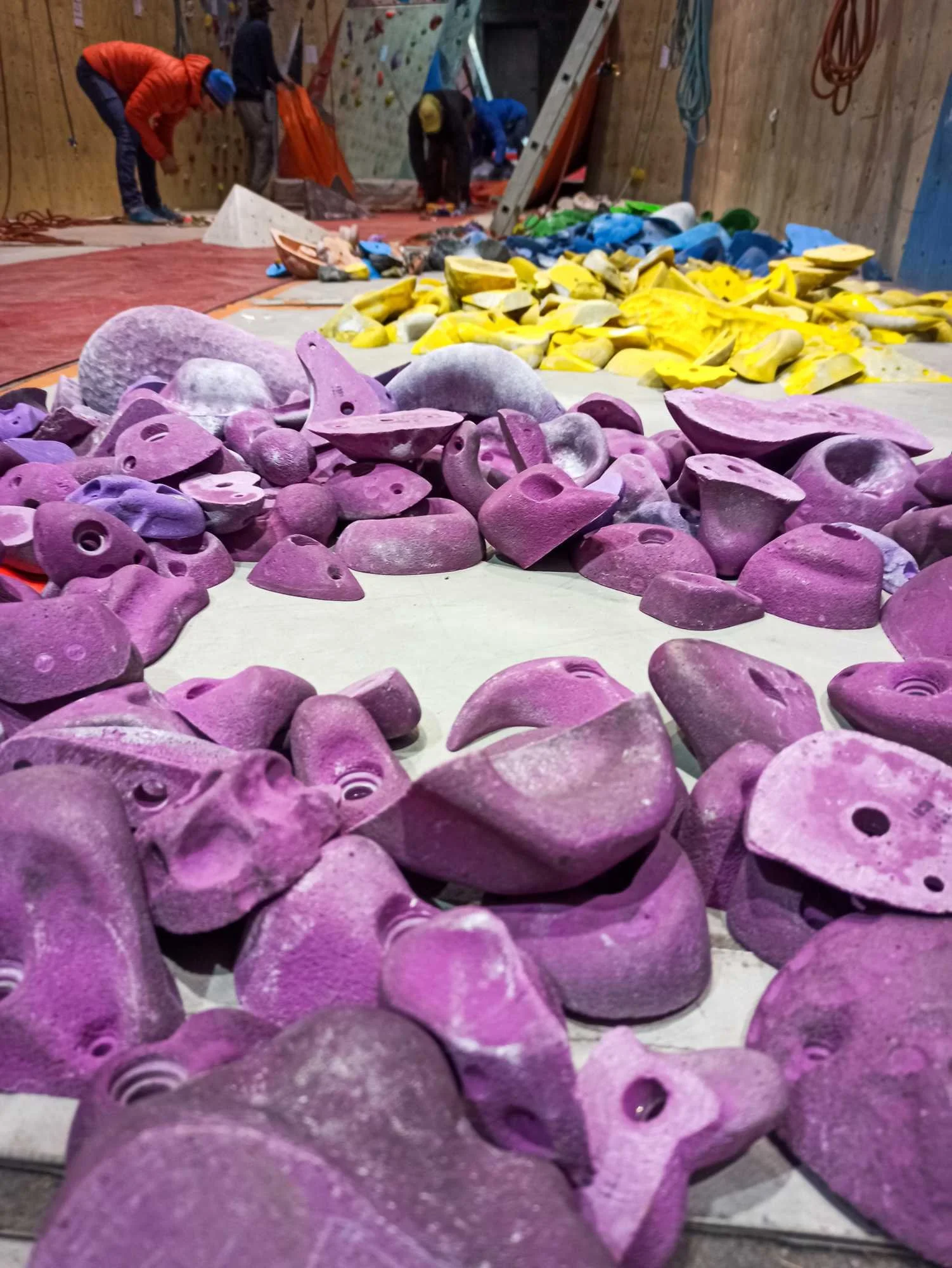 Les passages répétés dans les voies laissent pas mal de traces sur les prises, que ce soit la gomme des chaussons, la magnésie, ou tout simplement la poussière qui s’accumule. Toutes les prises ont donc été démontées, et ont été lavées unitairement à grande eau !