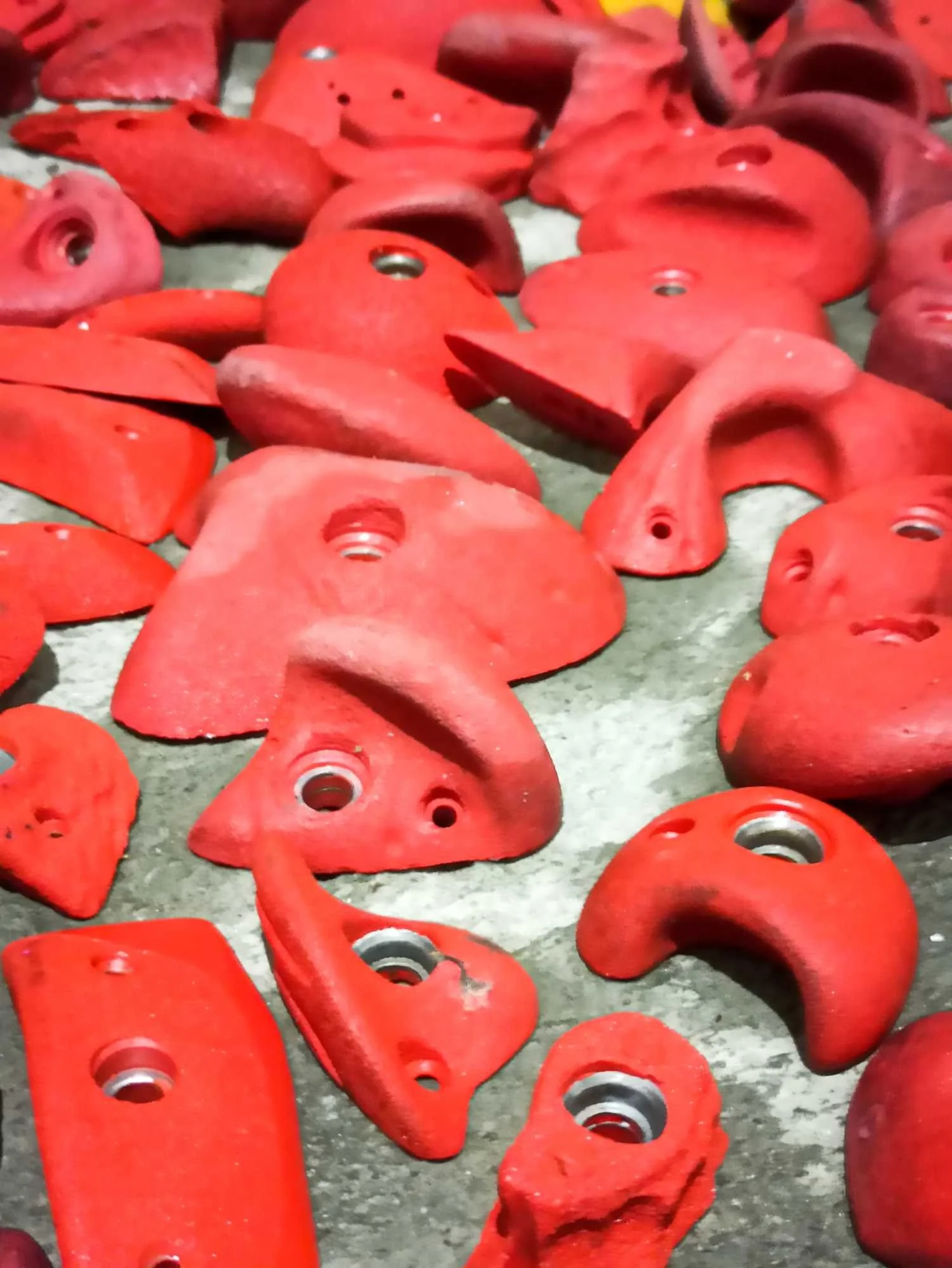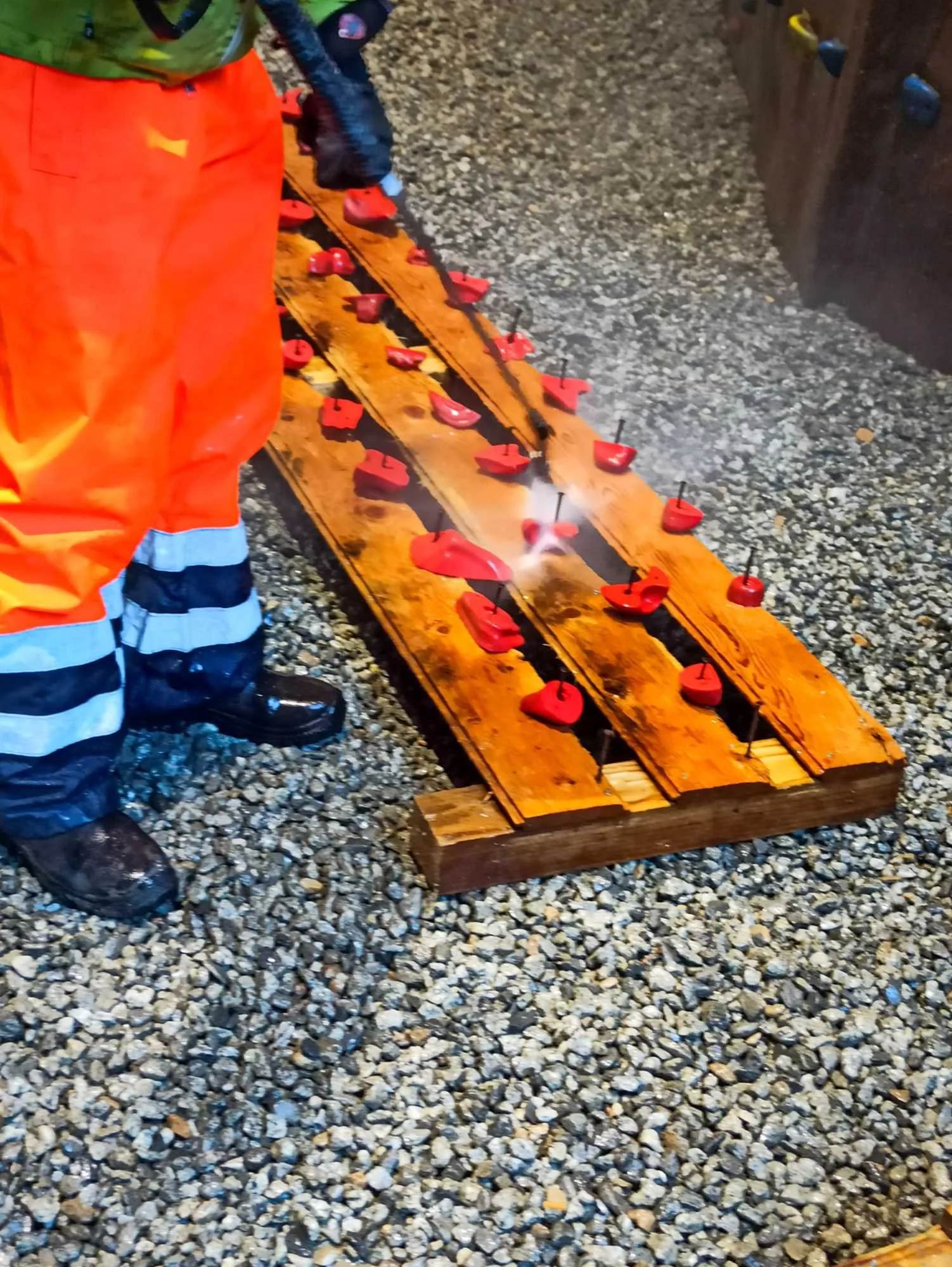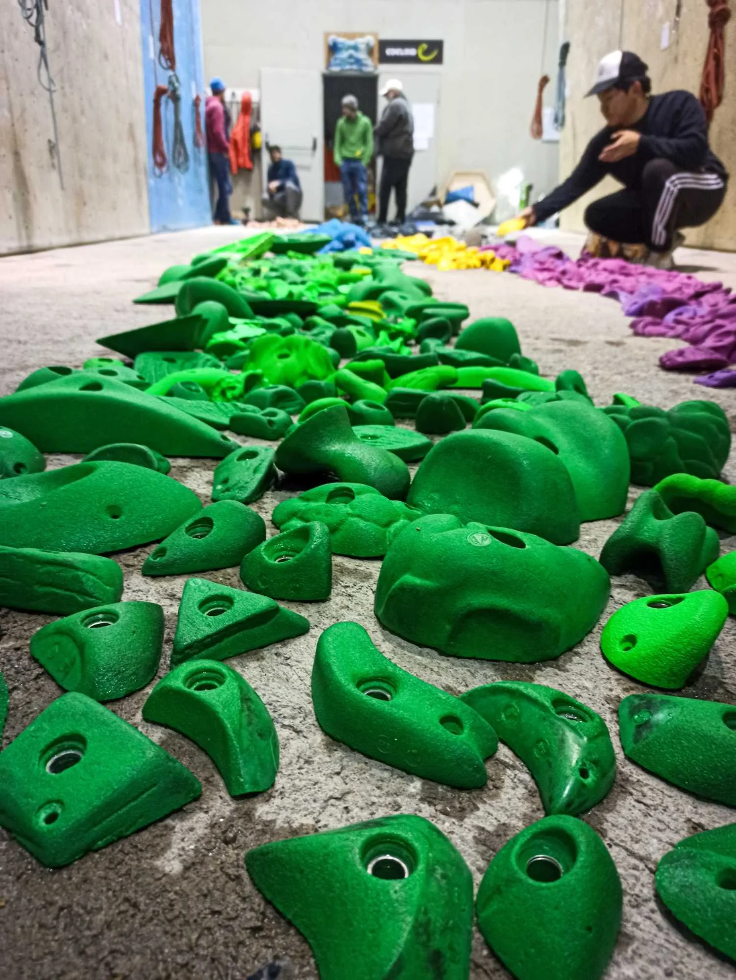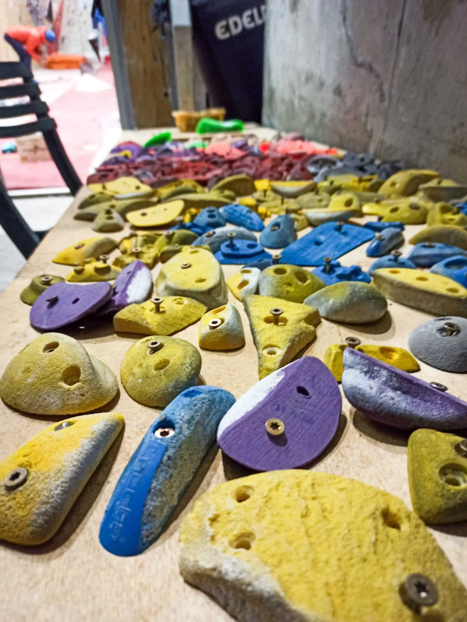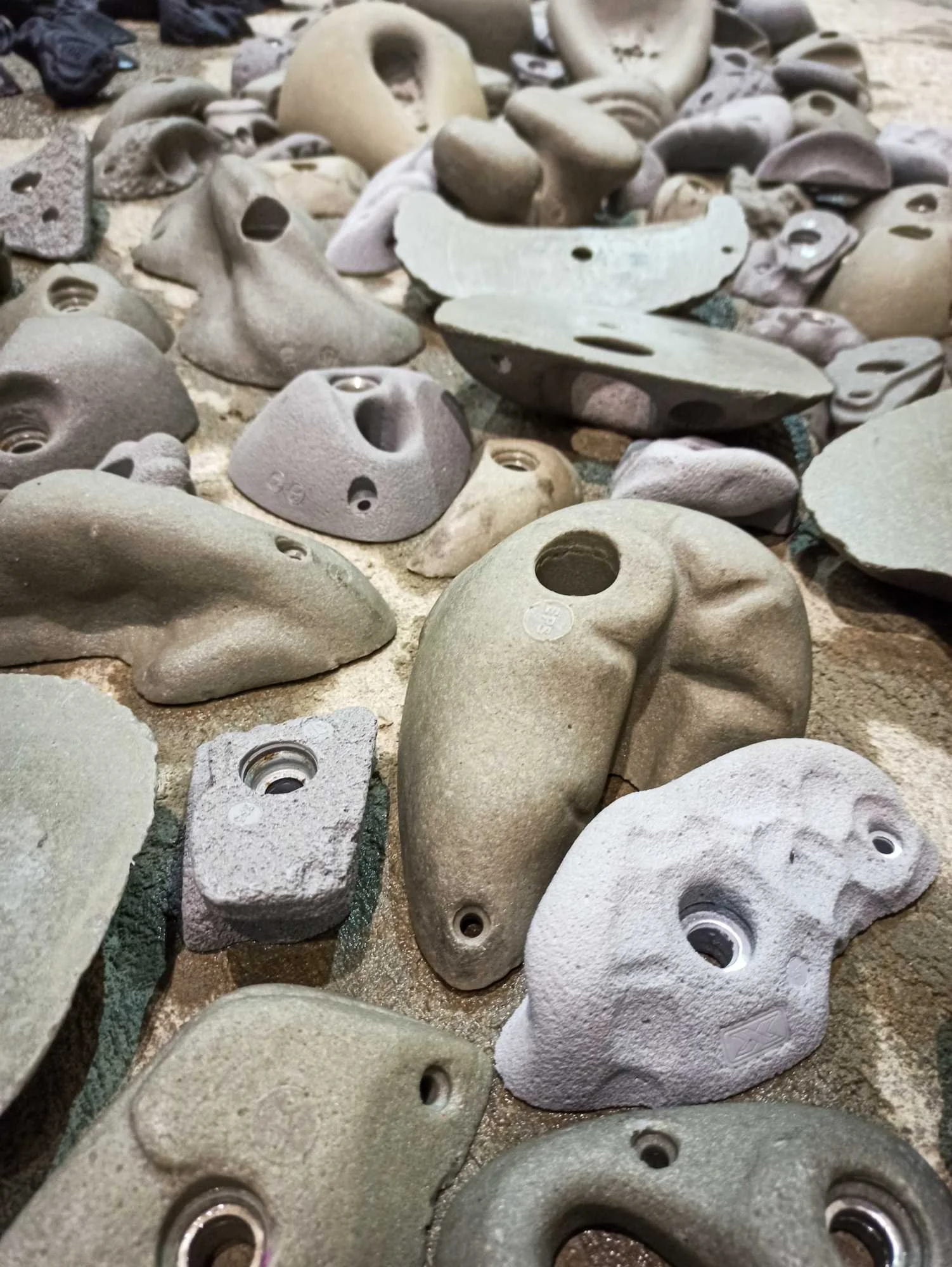 Les passages répétés dans les voies laissent pas mal de traces sur les prises, que ce soit la gomme des chaussons, la magnésie, ou tout simplement la poussière qui s’accumule. Toutes les prises ont donc été démontées, et ont été lavées unitairement à grande eau !