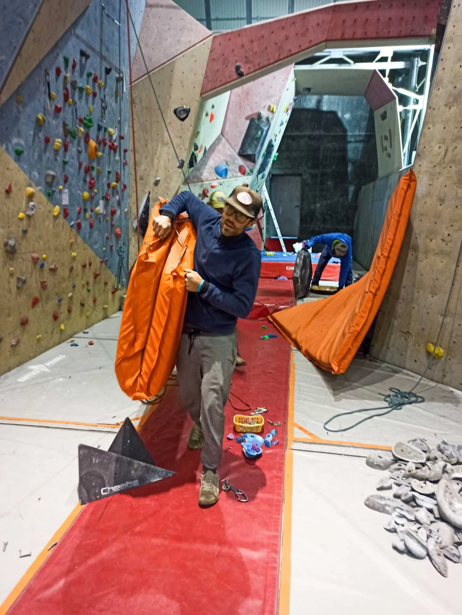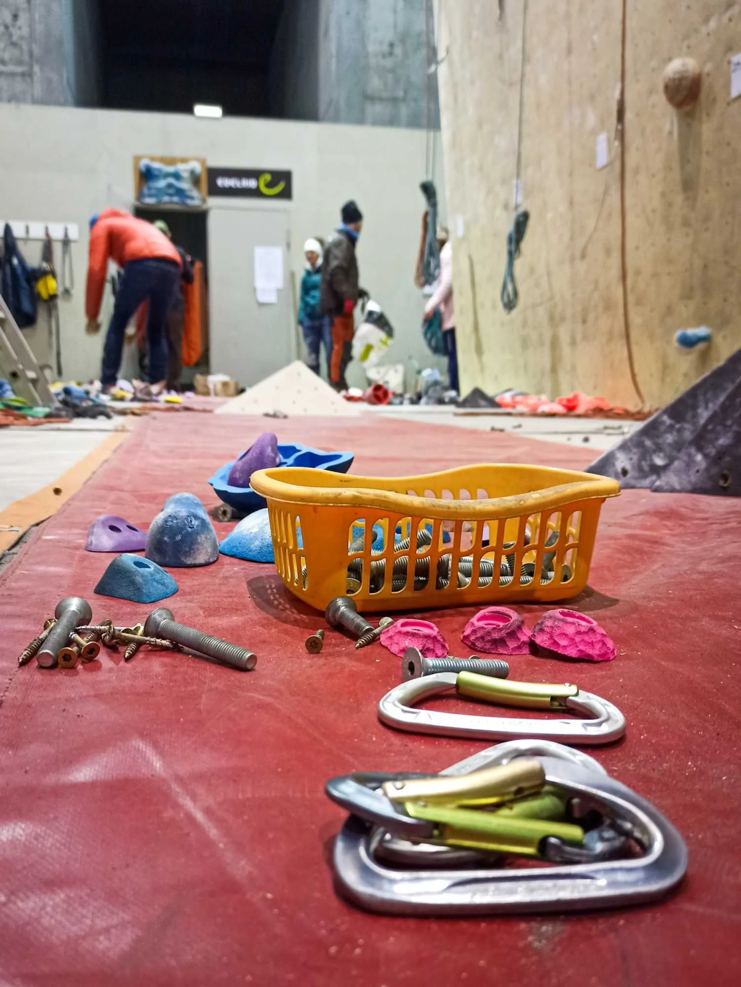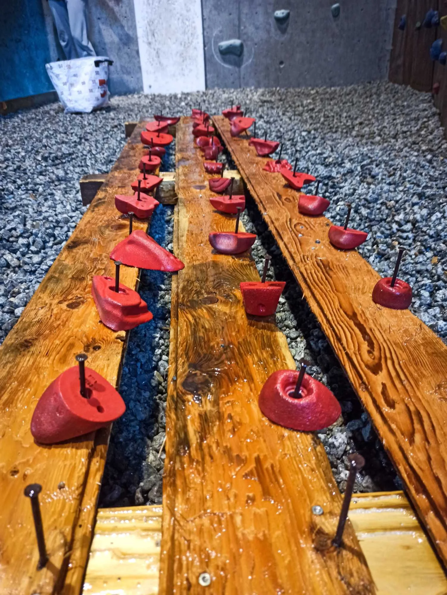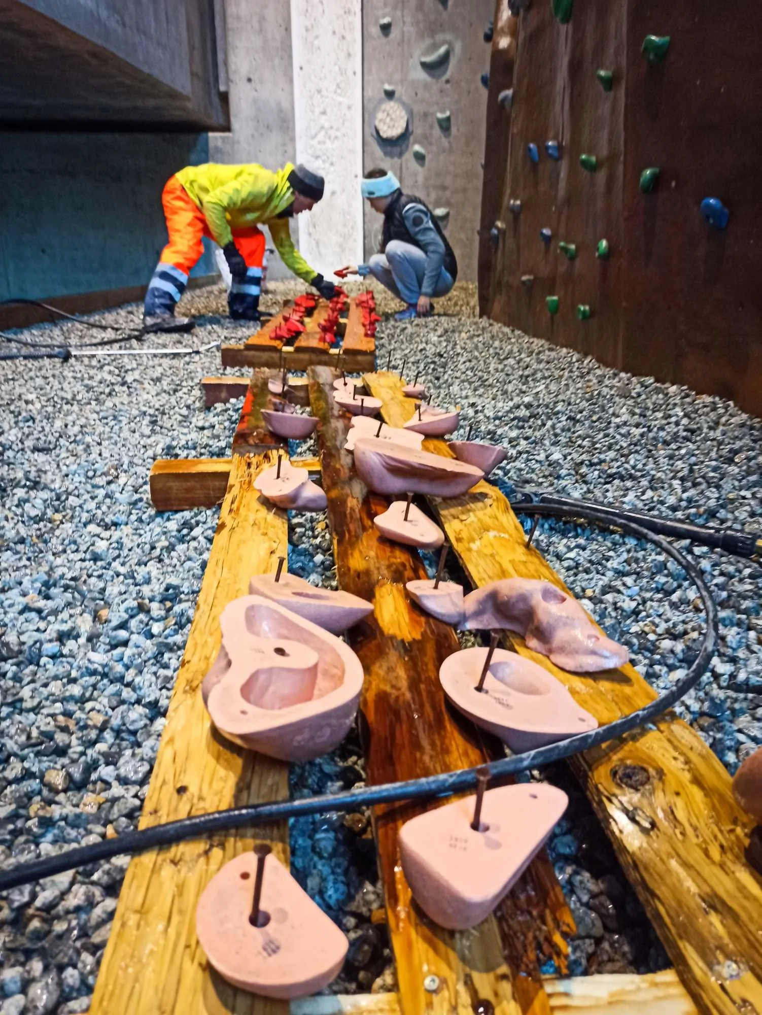 Les passages répétés dans les voies laissent pas mal de traces sur les prises, que ce soit la gomme des chaussons, la magnésie, ou tout simplement la poussière qui s’accumule. Toutes les prises ont donc été démontées, et ont été lavées unitairement à grande eau !